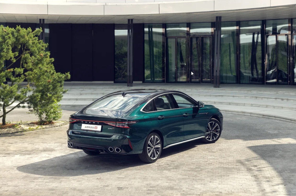 Я бы отметил еще и удачные цветовые решения. Кузов Chery Arrizo 8 может быть не обязательно официально черным. Специальная лимитированная версия Ultimate SE, например, демонстрирует этакую агрессивную элегантность в стиле fusion за счет использования ультрамодных декоративных элементов, а также кузова в глубоком изумрудном цвете с бронзовыми акцентными элементами и черной крышей.